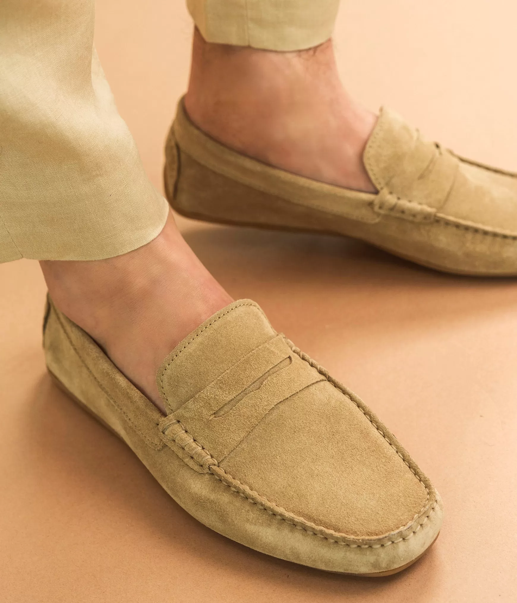 Un mocassin en cuir velours beige fabriqué avec soin au Portugal. Un intemporel facile à associer avec l’ensemble du…